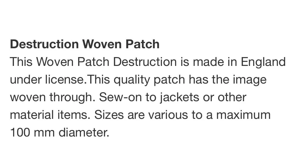 MUSIC MERCHANDISE › Destruction - Woven Band Patch Image 1 of 1 Destruction - Woven Band Patch A$14.95 Get notified by email when this product is in stock. Add To Cart Added!