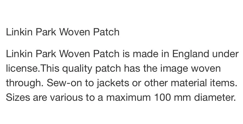 MUSIC MERCHANDISE › Linkin Park - Woven Band Patch Image 1 of 1 Linkin Park - Woven Band Patch A$14.95 Get notified by email when this product is in stock. Add To Cart Added!